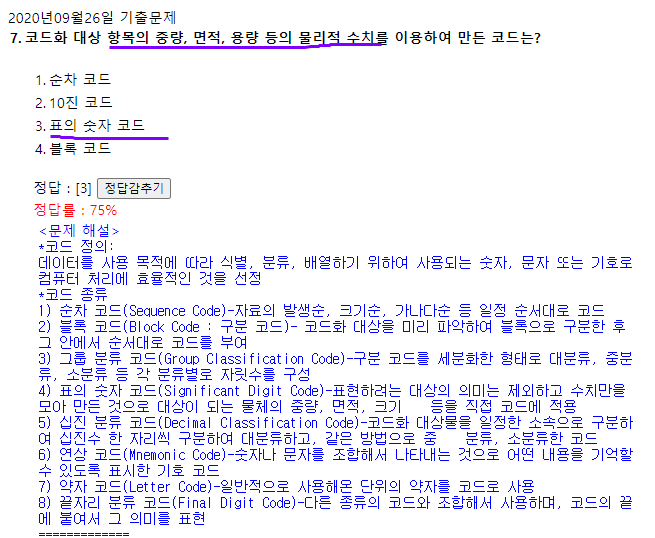 6) 연상 코드(Mnemonic Code)-숫자나 문자를 조합해서 나타내는 것으로 어떤 내용을 기억할 수 있도록 표시한 기호 코드
