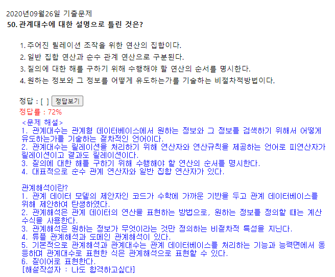 2. 관계해석은 관계 데이터의 연산을 표현하는 방법으로, 원하는 정보를 정의할 때는 계산 수식을 사용한다.