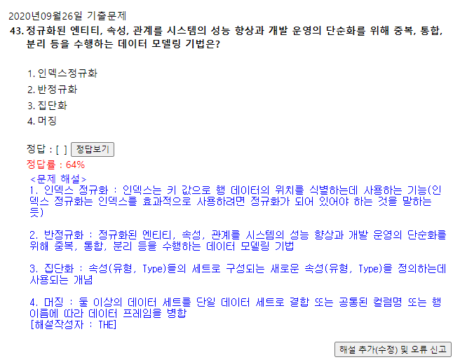 1. 인덱스 정규화 : 인덱스는 키 값으로 행 데이터의 위치를 식별하는데 사용하는 기능(인덱스 정규화는 인덱스를 효과적으로 사용하려면 정규화가 되어 있어야 하는 것을 말하는 듯)