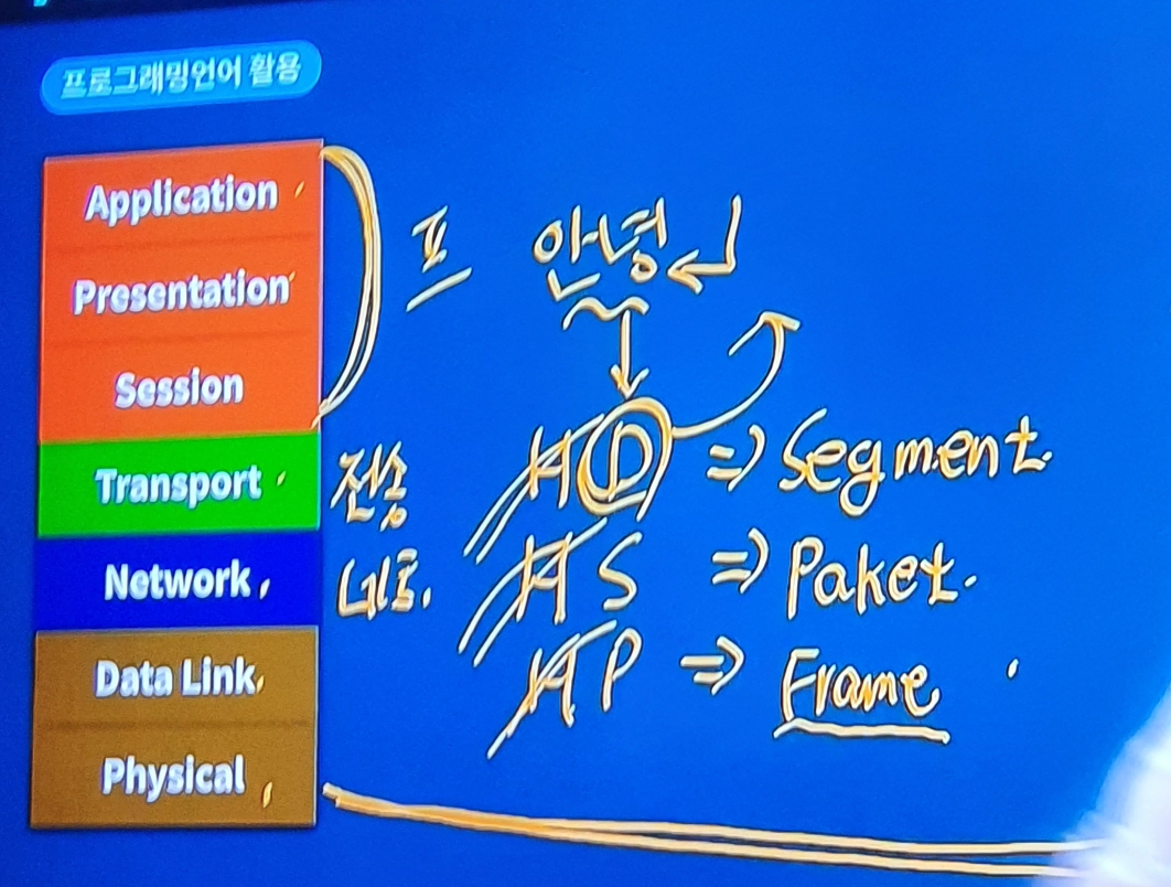 다른 시스템 간의 원활한 통신을 위해 ISO(국제표준화기구)에서 제안한 7 단계 표준화 프로토콜