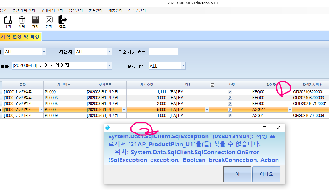 21AP_ProductionPlan_U1로 SQL넣어야하지만 21AP_ProductionPlan_UI로 적음